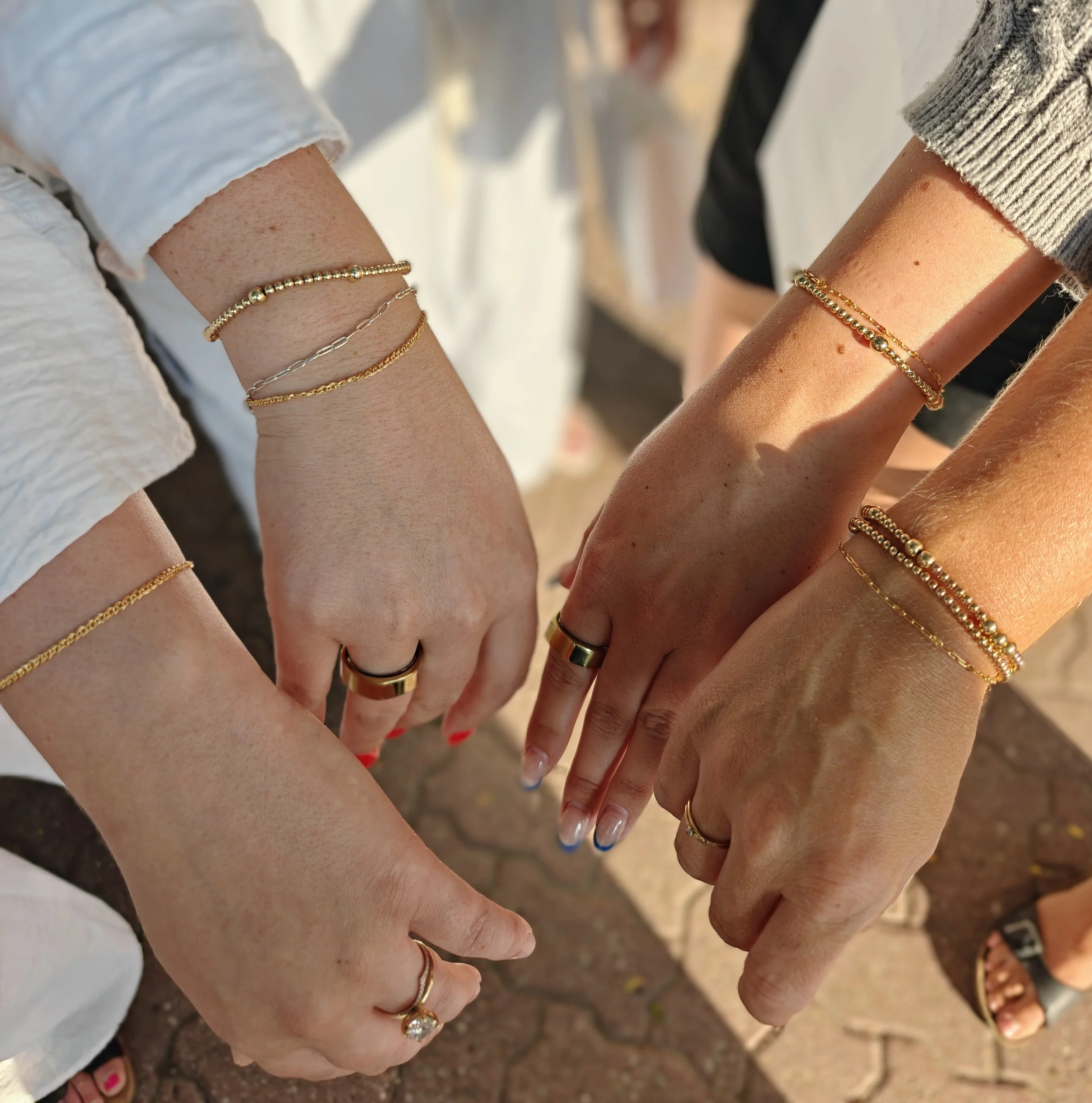 We’re fully mobile and love creating unforgettable moments by offering the Get Linked experience right at your location. Whether it’s a girls' night in, a birthday bash, a corporate event, or a celebration of friendship, we’ll come to you with our elegant collection of over 50 chains and charms, ready to create custom-fitted permanent bracelets, anklets, or necklaces for your group.